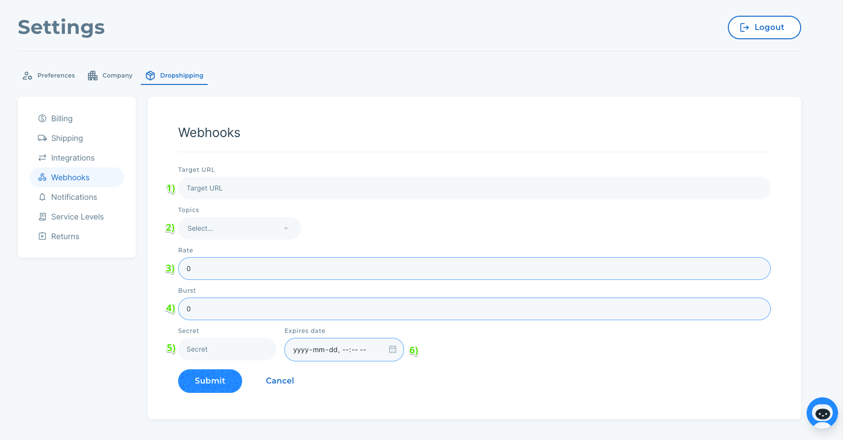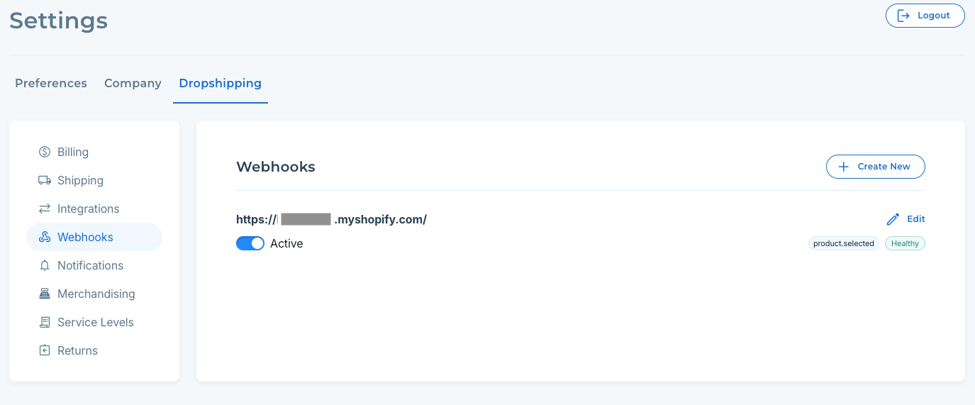 After logging into your Modern Dropship account, you'll be able to create, edit, and monitor your webhooks from the Webhooks section in the Settings.