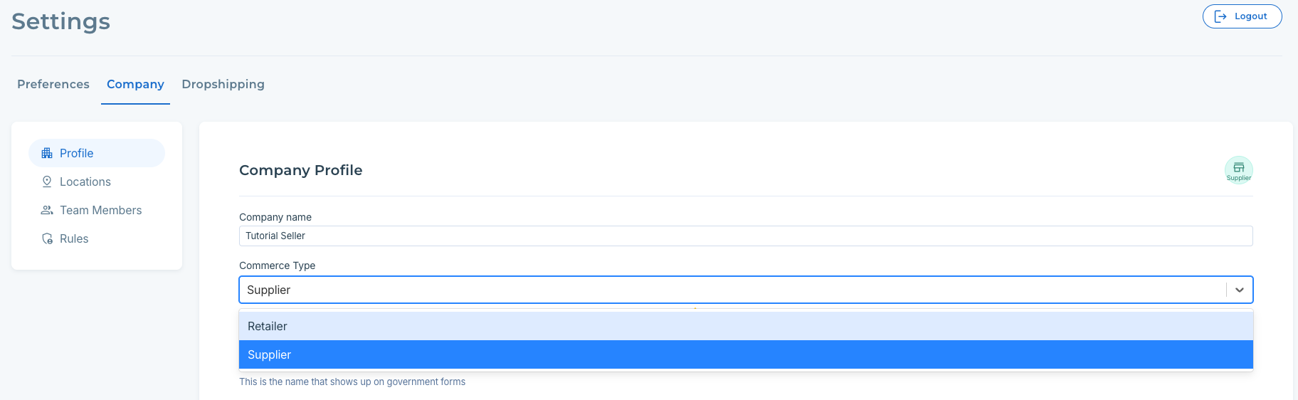 When you create an account with Modern Dropship, you select your company's commerce type to be either a Buyer or a Seller. However, your decision about this may change during the onboarding process.