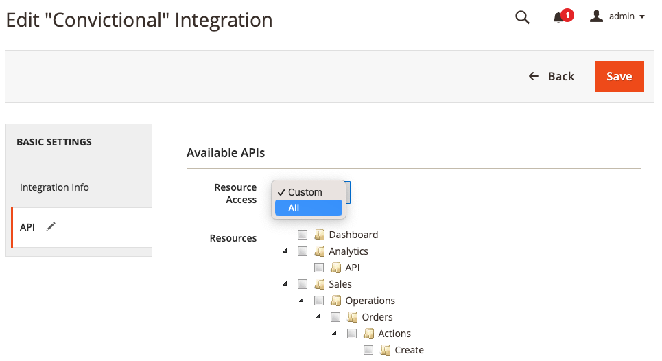 Go to Basic Settings > API. Click the "Resource Access" dropdown under "Available APIs". Select "All":
