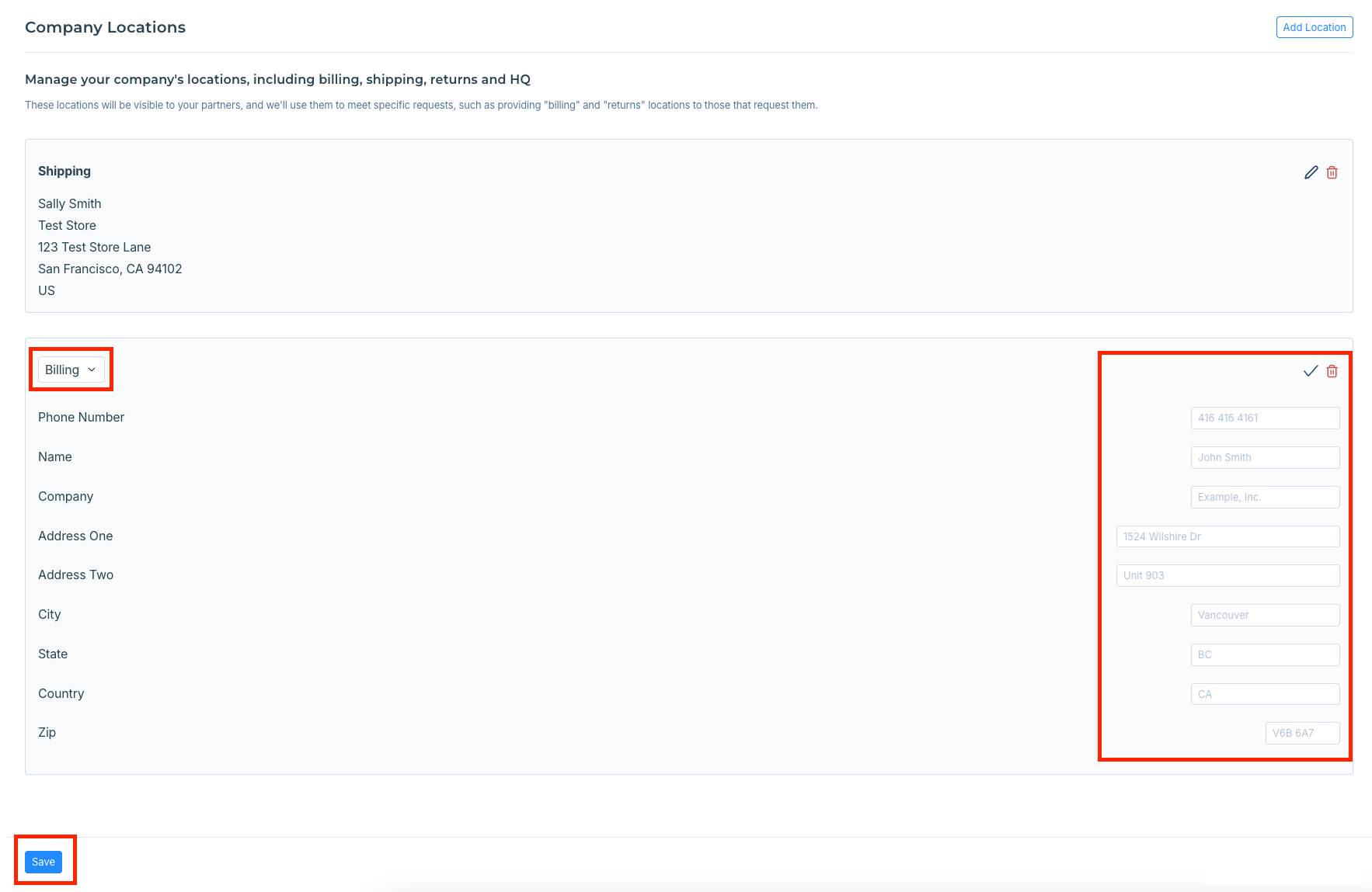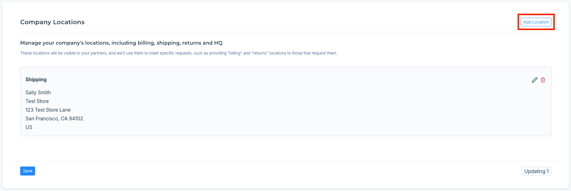 Settings > Company > Locations > Add location