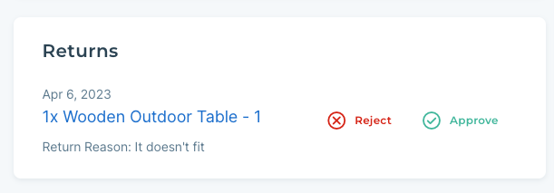 Rejecting the return does not create a return in the Modern Dropship system. A reason for the rejection is requested. This rejection reason is then shared with Retailers to provide context on why the return was rejected by the Supplier.
