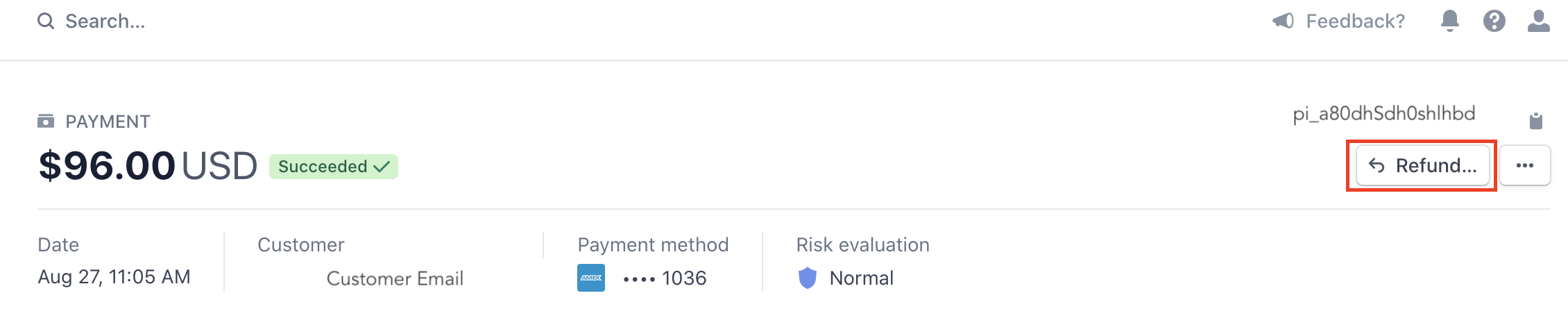 If you want to refund the payment for the order to the retailer, or if you are the retailer and you want to initiate a refund with a supplier, you can do so by going to your Stripe Dashboard. You will then arrive at a screen like the one below: