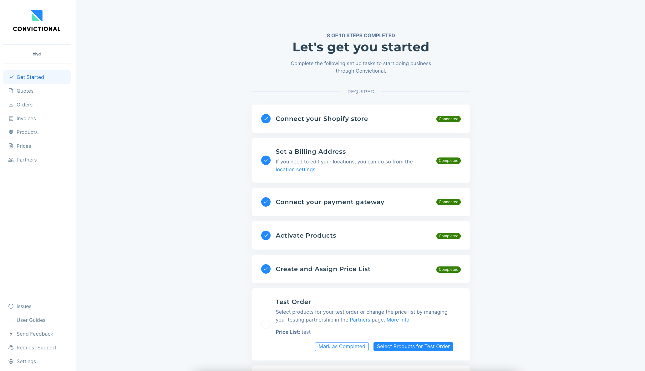 If you have already completed this tile on your Get Started page, please reach out to support@moderndropship.com, and we can enable the test order option for you.