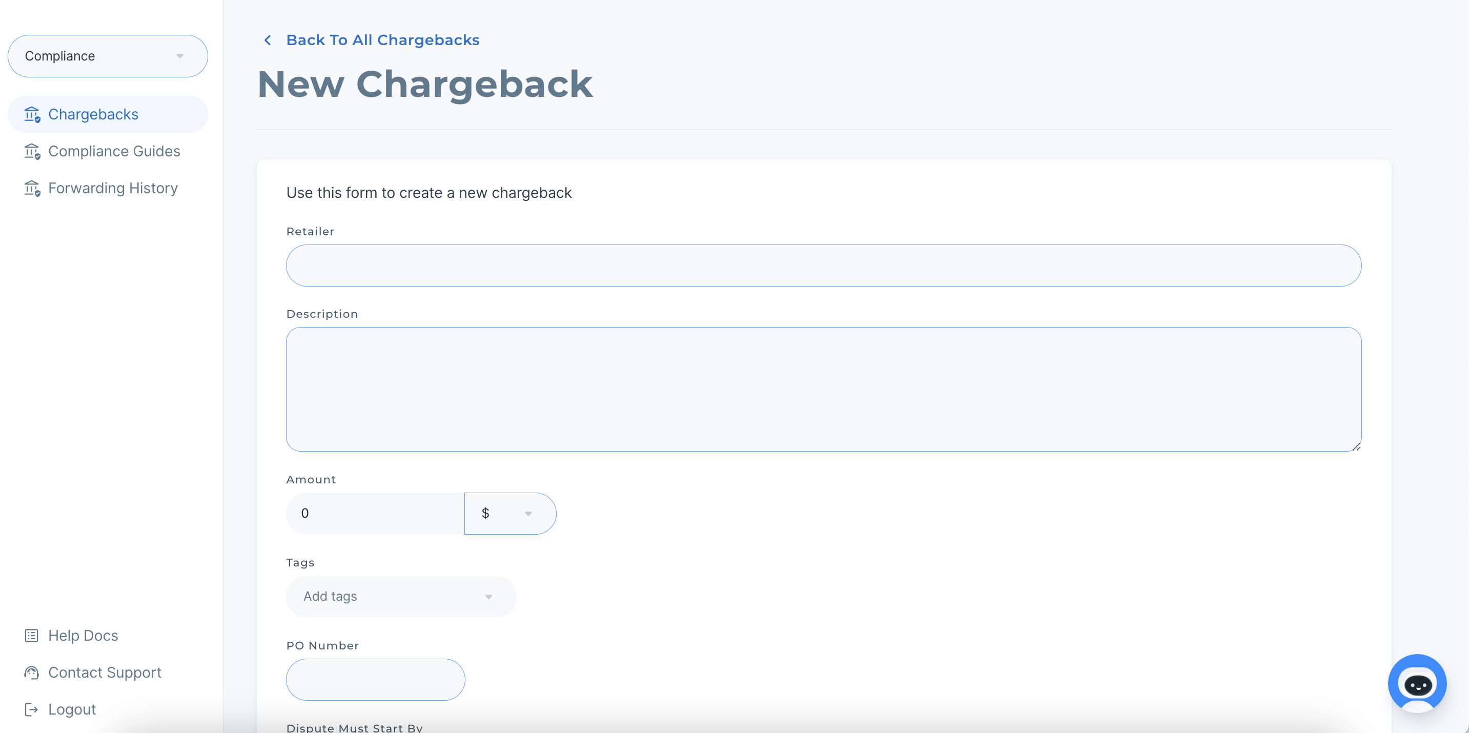 Add New Chargeback