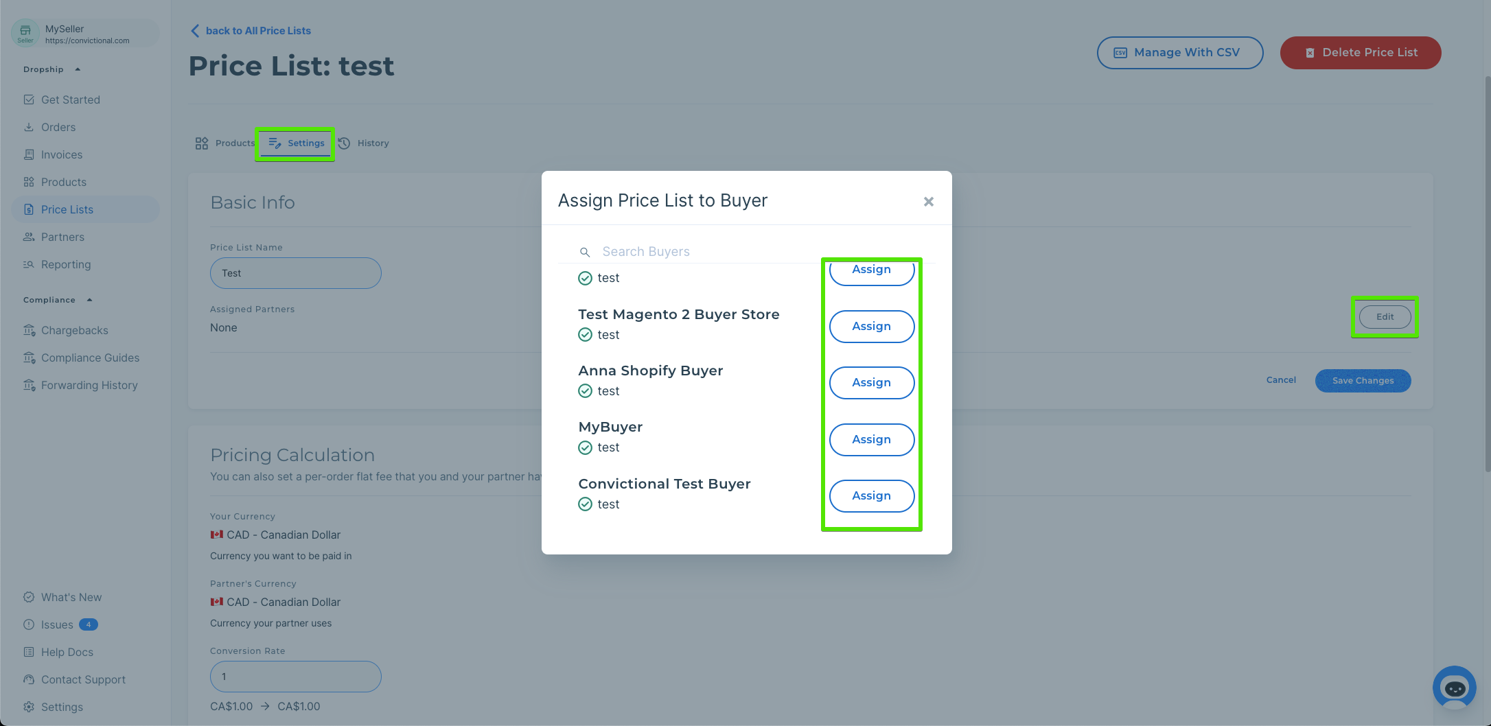 You will now have assigned your price list to this partner. Your products will be visible for them to select and list in their ecommerce store.