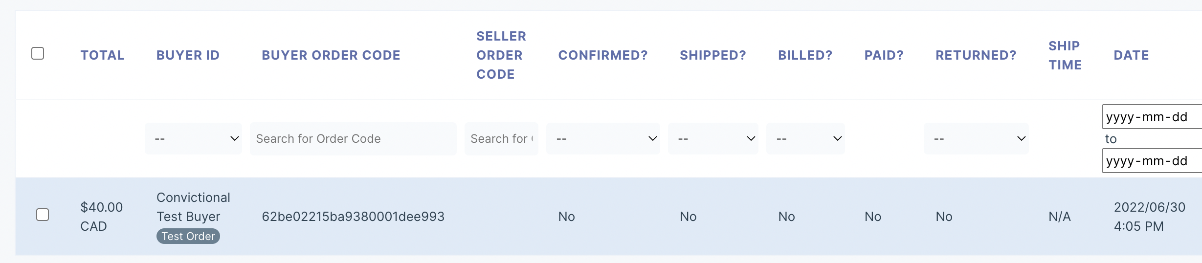 Now, navigate to the Orders page. Test orders are flagged and highlighted. Click on the test order to see more order details: