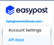 You can then access your Easypost API key from the top-left navigation of the Easypost app: