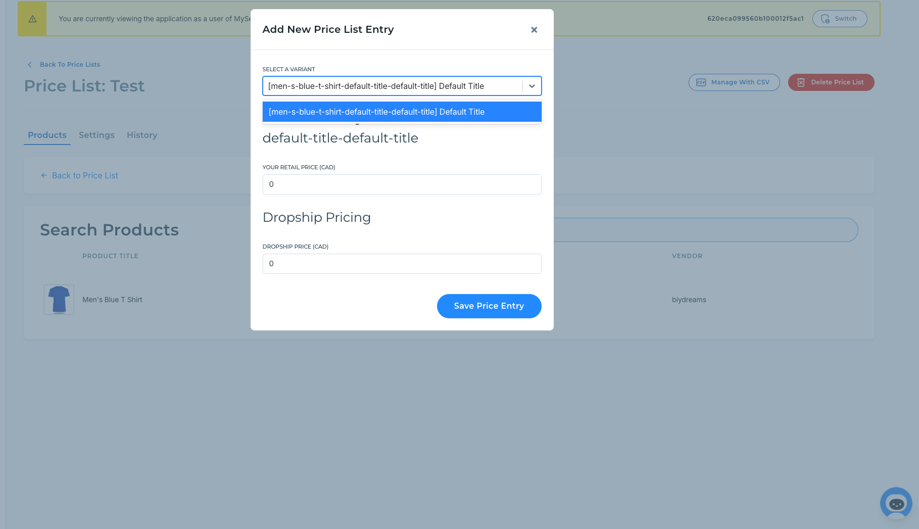 New products synced into Modern Dropship will be added to this price list automatically. When the products are added, they will automatically use the dropship margins that you established when setting up your price list. Below, you can see I added a new product with a few variants, and they have been priced automatically: