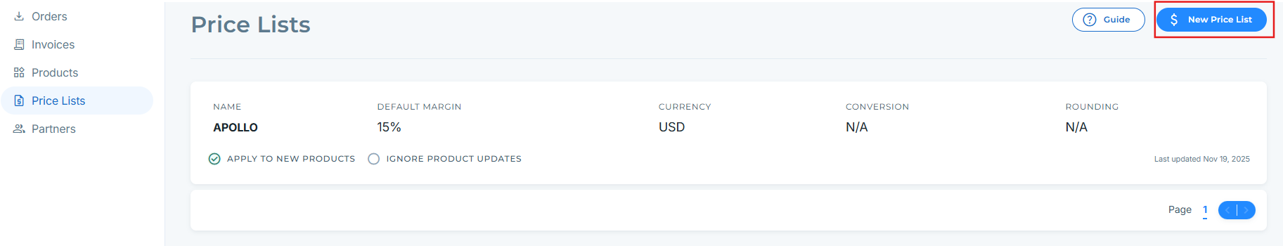Price Lists let suppliers control which products they offer to retail partners and how those products are priced. By creating a Price List, you can apply margins or discounts, manage currency and rounding rules, and keep pricing consistent across partnerships.