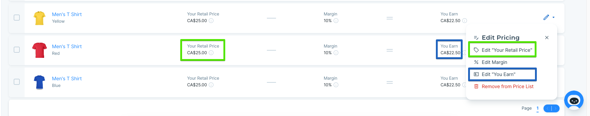 Dropship Margin - The percentage or fixed amount that is taken off 'Your Retail' price to calculate the 'You Earn' price