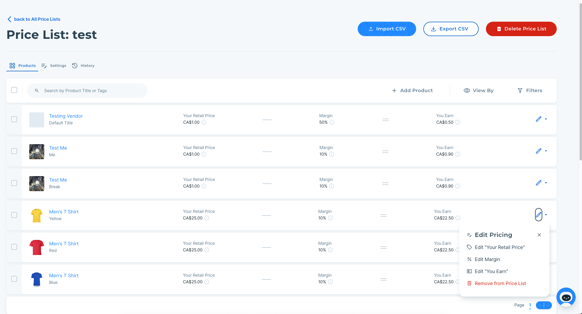 Price Lists can be configured so that any future products synced to Modern Dropship will be automatically made available for retailers that have this Price List assigned to them, applying the configured margins to each product.