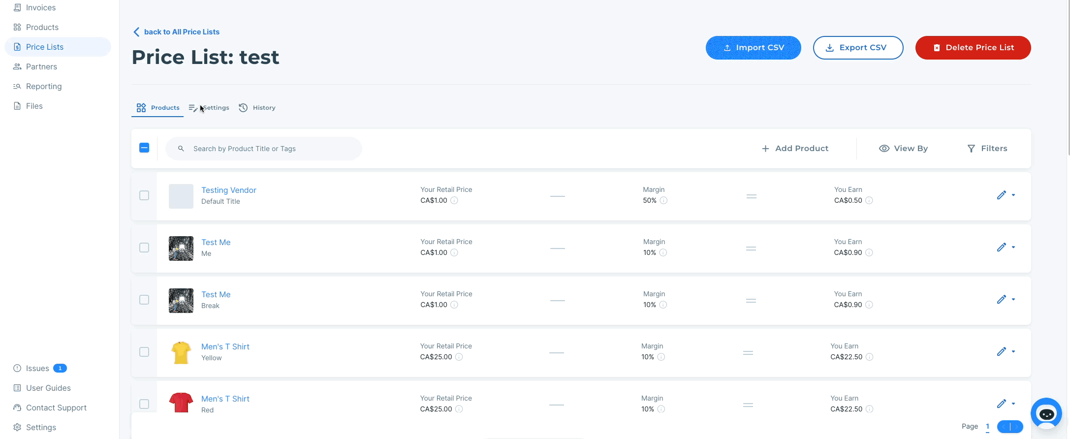 The above image, the supplier will be paid in CAD, but their partner will be selling the products in USD. A conversion rate has been added so that the supplier's product has a new suggested retail price in USD for the retailer to use.