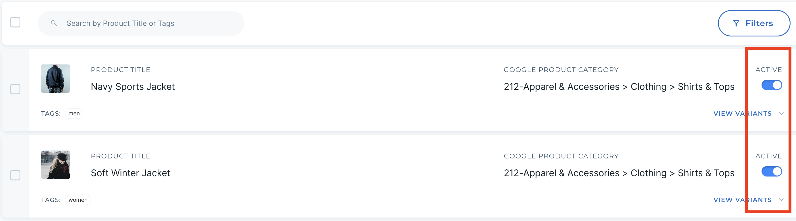 6. Mark products 'Active' or 'Inactive'