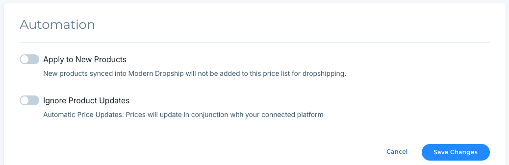 If your margins are not consistent across the entire catalog, you will need to update your prices one by one. Before doing so, ensure that the ‘Ignore Product Updates’ setting is toggled on.